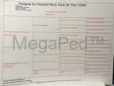 Magic was imported from Andrew DiGiorgio . Both sire and dam have an impressive show career, with multiple Best in show Win.